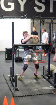 Hernia: I have had no symptoms of hernia. I did limit some of my weights and movements – for example, I never lifted more than 80% of my pre-surgery back squat, and I avoid classic sit-ups. Being mindful of intra-abdominal pressure is still a factor: the Ostomy Armour provided useful feedback there. Lifting a 600# yoke, deadlifting a 350# barbell, or shouldering a 160# stone (as in my photo) were all safely within work capacity.
